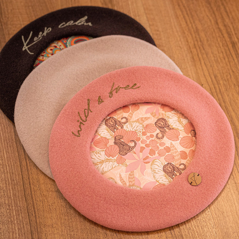 Esta es la explicación de los alegres forros interiores de los sombreros y boinas tan característicos de Ulaland. Además de aportar un acabado impecable, son la expresión de esa alegría que llevamos en la cabeza.